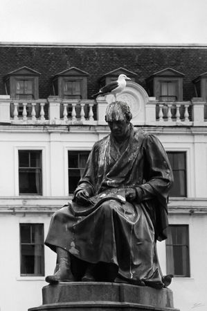 Laissés comme des signatures blanches sur le front, les épaules, et la dignité de ces figures historiques silencieuses, les excréments d’oiseaux viennent subtilement nous rappeler, avec une pointe d’humour, ce que l’Histoire et ce besoin profondément humain de « désigner la Grandeur » tend parfois à nous faire oublier, pour les plus jeunes, ou refouler, pour les plus âgés : face au temps, face à la Nature, face aux oiseaux, nous sommes tous égaux. L’humour rejoint ici la profondeur, et laisse pleinement la Nature reprendre ses droits, sans jugement, par simple constat photographique, dans cette indifférence tranquille qui signe les vérités les plus évidentes.